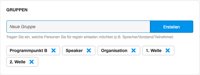 Legen Sie hier die Gruppen an, welche Sie für den weiteren Verlauf für Filterungen/Sortierungen nutzen.