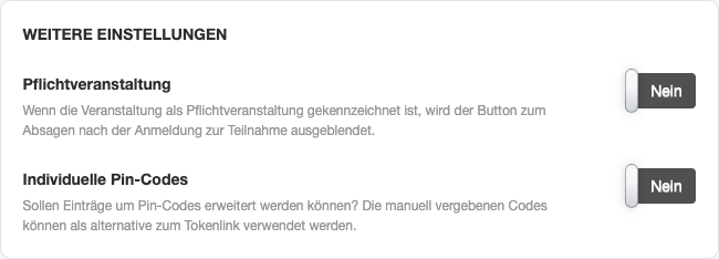 Konfigurieren Sie Ihr Event als Pflichtveranstaltung oder über Pin-Codes ein alternativer Einladungsweg zum Event.